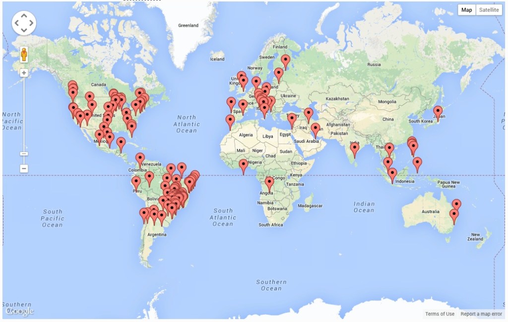 Our website serves as an online resource for people around the world interested in learning more about Dances of Universal Peace. Those interested in starting their own local group are welcome to contact us for ideas, or borrow ideas and inspiration from our website. The maps below show recent visitors from around the world. Click any map for a larger gallery view.